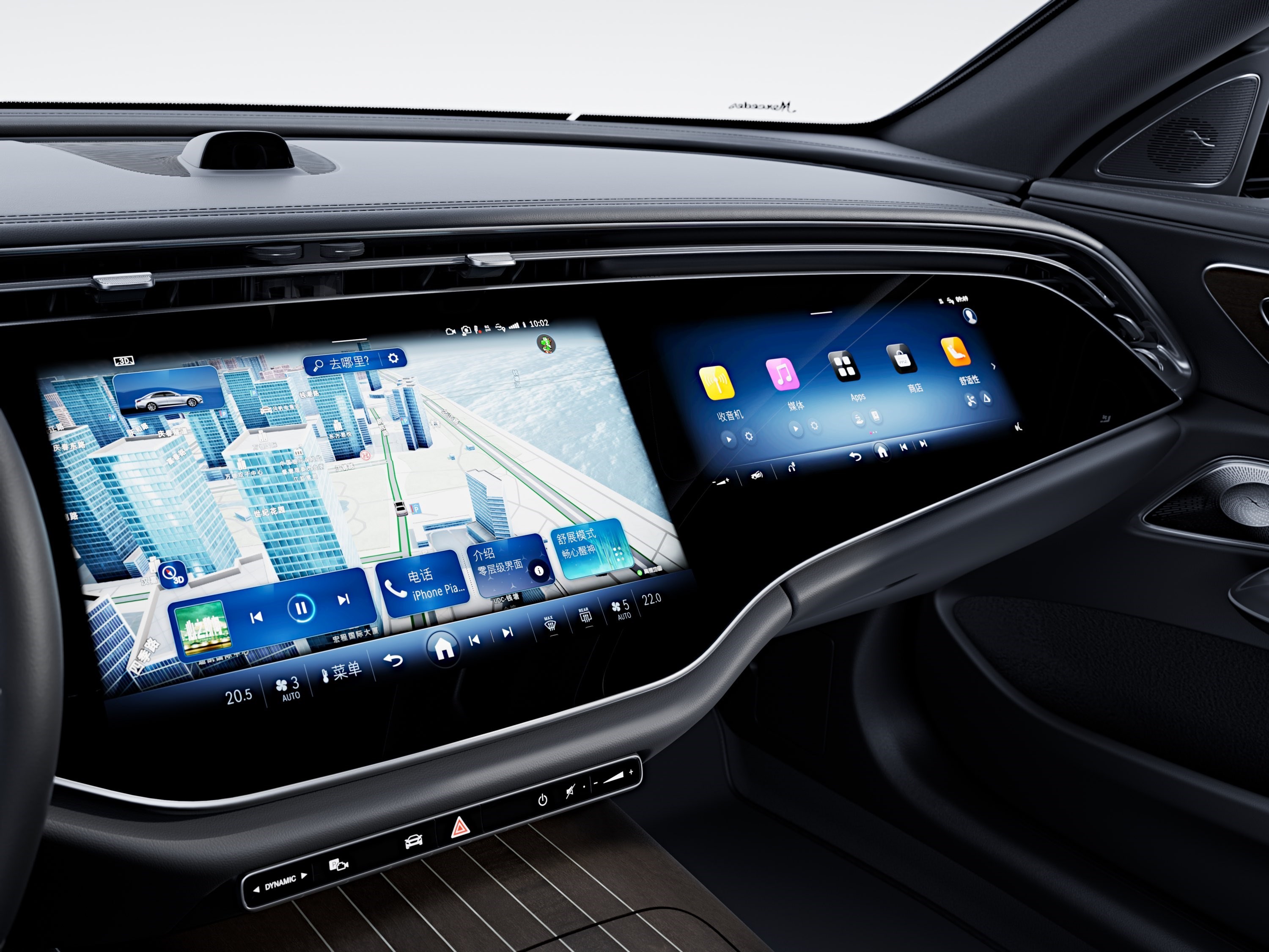 進(jìn)入全新奔馳E級車內(nèi),可以說豪華+科技風(fēng)相碰撞,整體氛圍非常吸睛,而車內(nèi)最耀眼的部分自然是全新大尺寸MBUX超級屏,這塊屏幕首發(fā)搭載了第三代MBUX智能人機(jī)交互系統(tǒng),同時也是豪華品牌中首款搭載高通8295芯片的車型,從而實(shí)現(xiàn)更多第三方車載應(yīng)用的搭載,例如抖音、玩游戲等等。此外,全新奔馳E級新增自拍攝像頭,支持人臉識別以及場景模式,便于用戶通過Zoom、Webex等拍攝照片或參加視頻會議(支持5G網(wǎng)絡(luò))