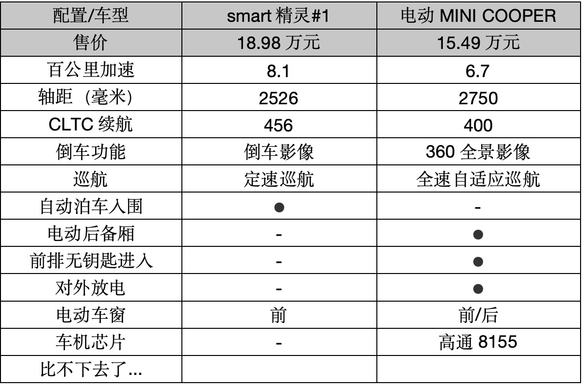 即使如此,銷量依然不盡人意,相關(guān)數(shù)據(jù)顯示,其今年1-5月份上險(xiǎn)量9099輛,同比下滑53.6%,況且smart精靈#1的配置還比電動MINI COOPER優(yōu)秀那么多!